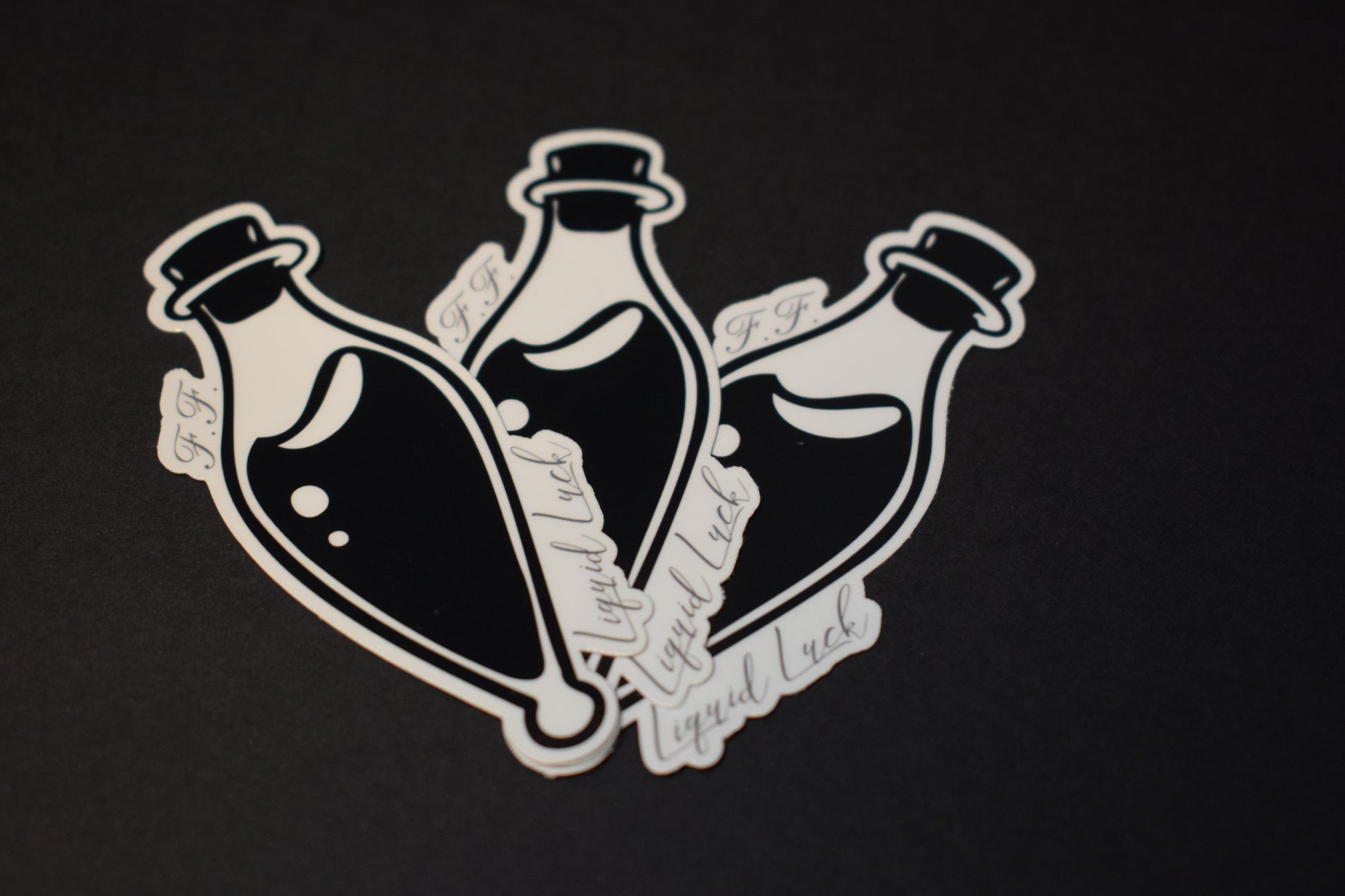 Black and white Vile of Liquid Luck, also known as Felix Felicis - sticker.